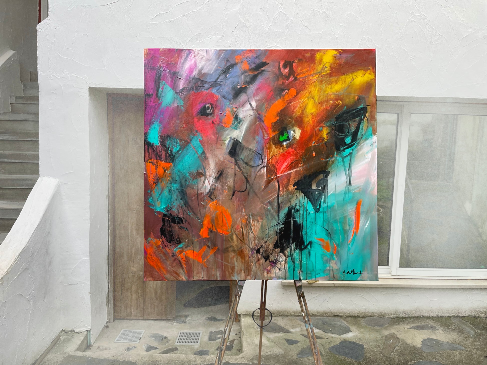 This 100 x 100 x 4 cm abstract painting