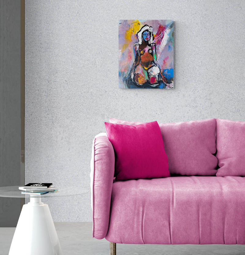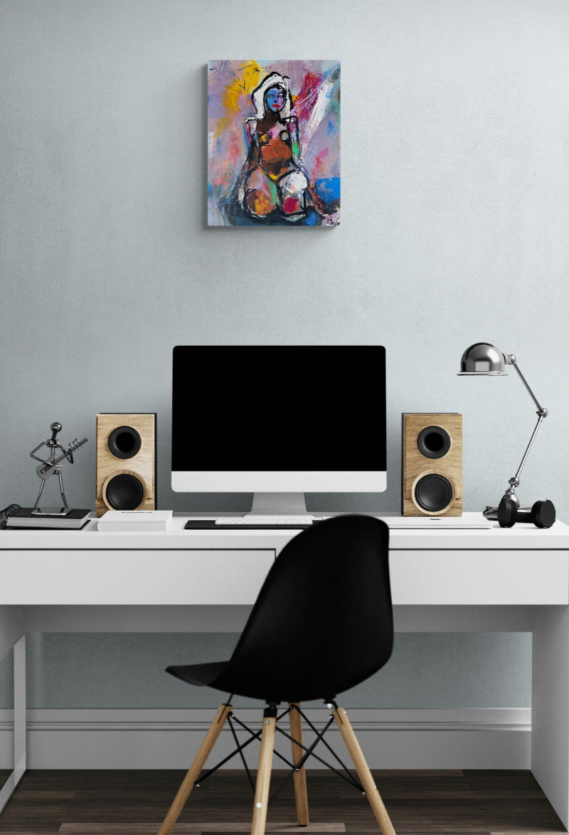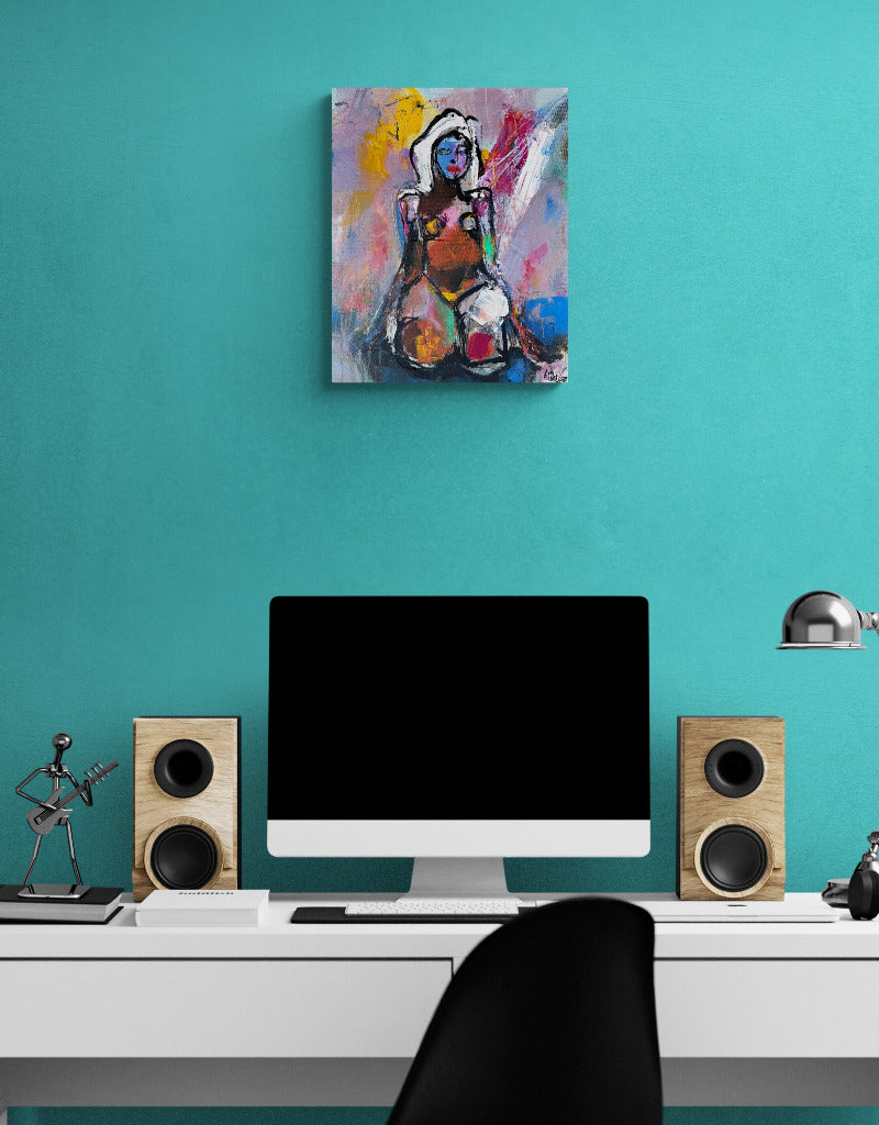 Acrylic 20 x 16 x 1.35 " female nude in an abstract expressionist stye.