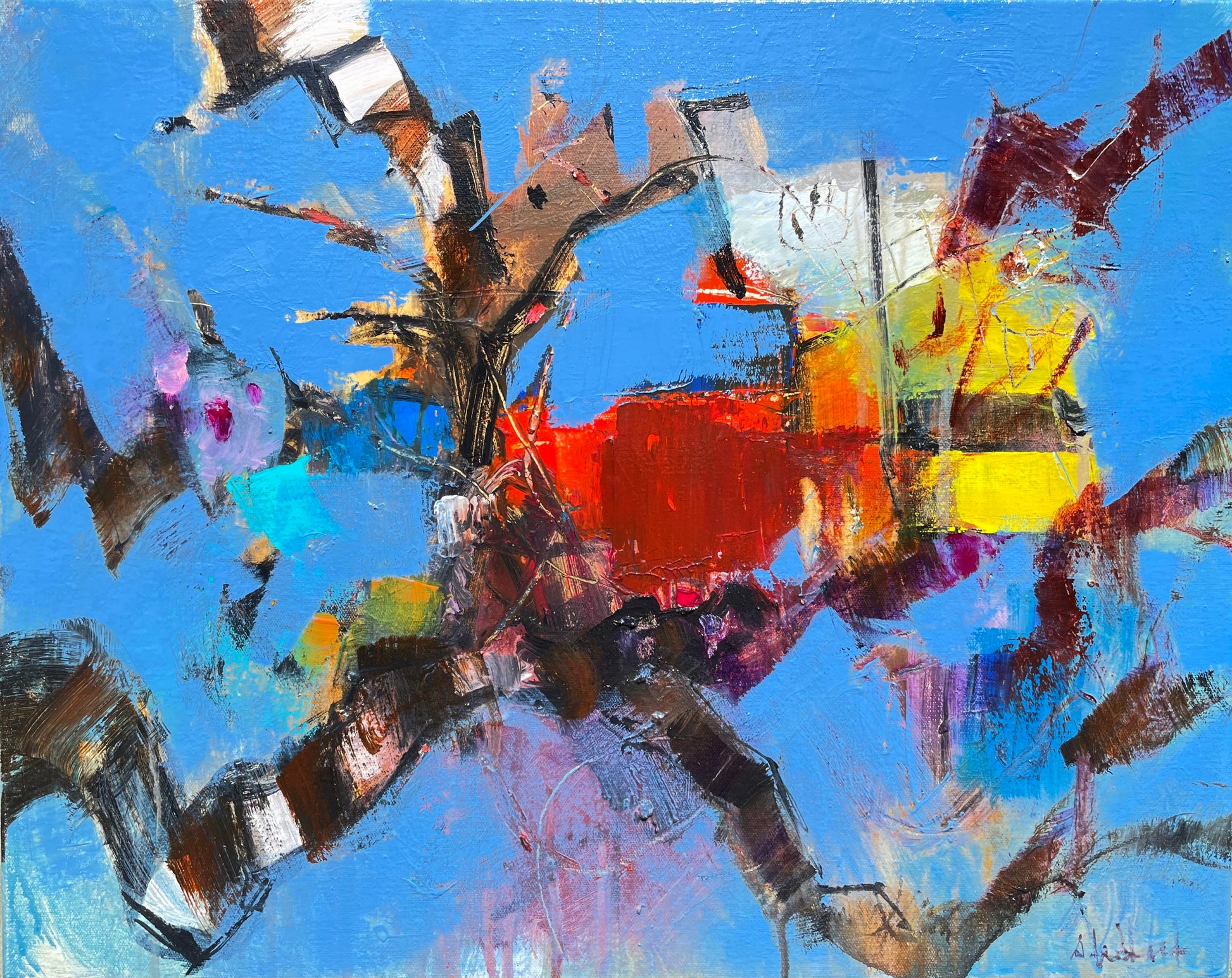 20 x 16 x .85’’ Acrylic on canvas. An impression of the organized chaos of nature, trying to reorganize what I see in a pleasing fun abstract pattern. Gloss varnished and ready to hang