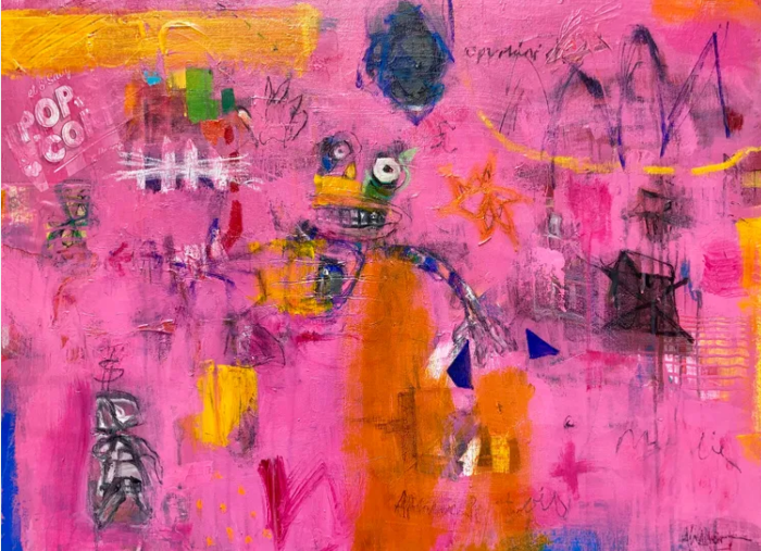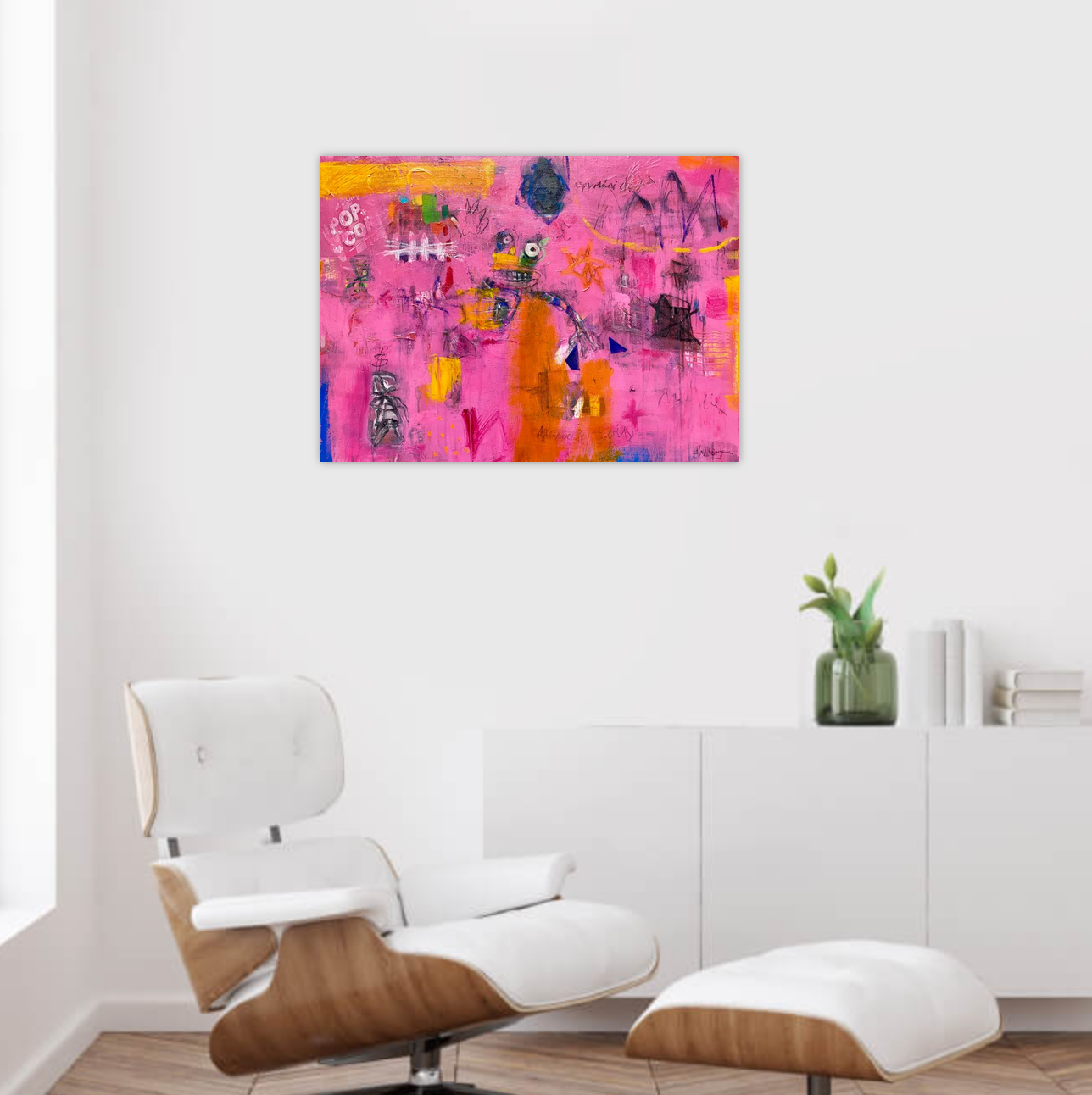 Magenta color field, take your eye for a wander around the areas both hidden and on display . Varnished, acrylic on canvas. all paintings are ready to hang.