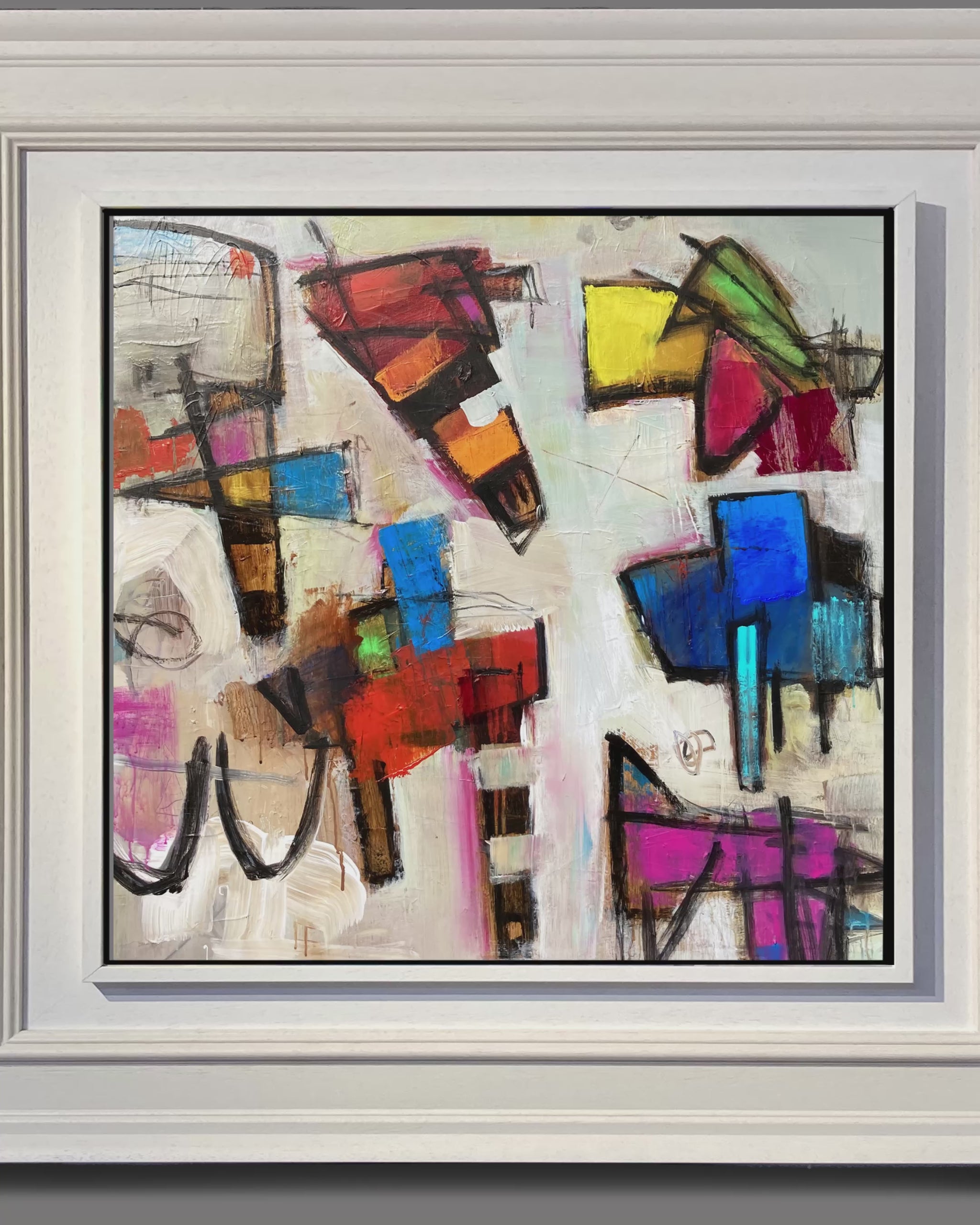 Abstract painting. Shipped as a stretched canvas, ready to hang. The framed image is to give an idea of how it might look in that type of frame. I am happy to photoshop different types of frames, as I love seeing how the painting takes on a different personality.