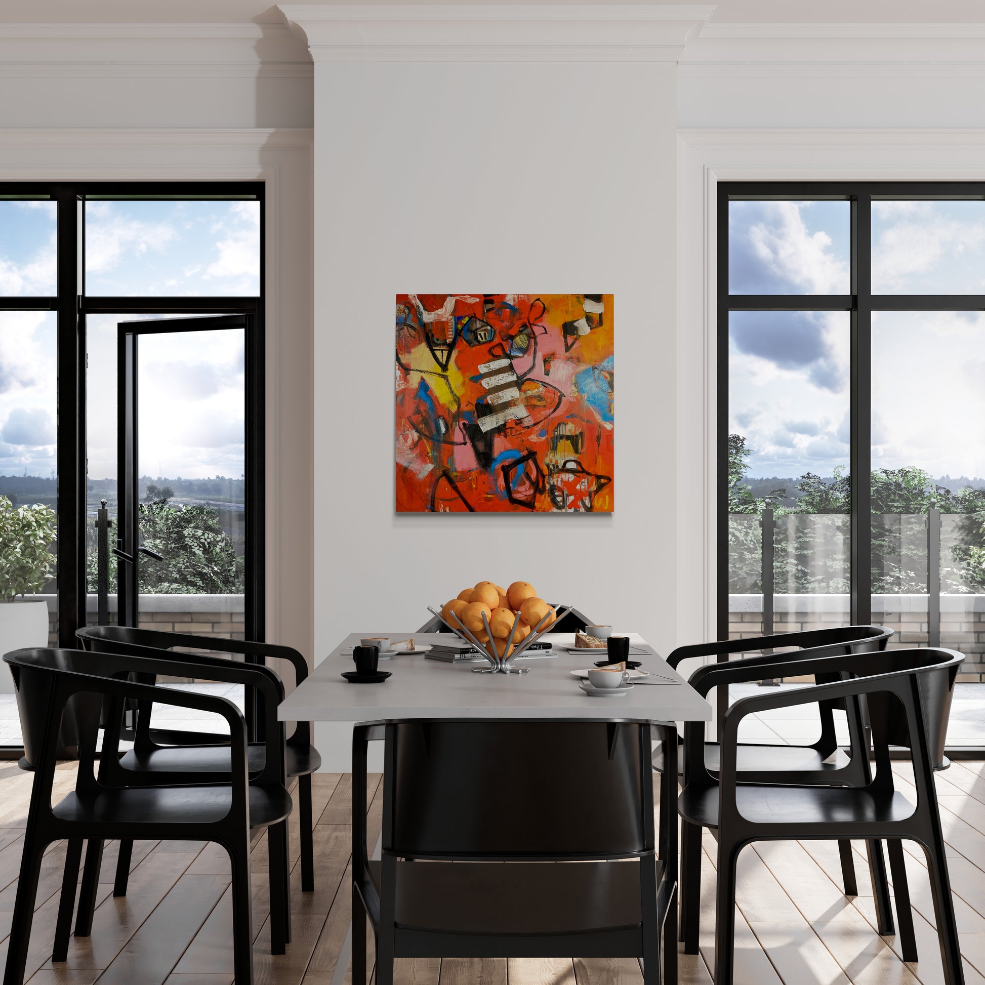 Acrylic and a few mixed media surprises. This one has so much good energy and life, It quietly shimmers.