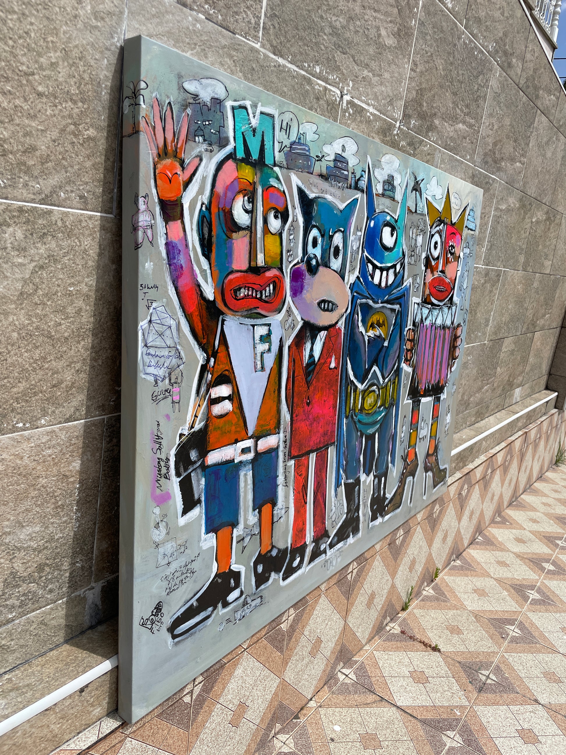 44 x 60’’ acrylic and mixed media on canvas; Avalaible on Ugallery.com . Their price is same as mine, and includes crated shipping worldwide.