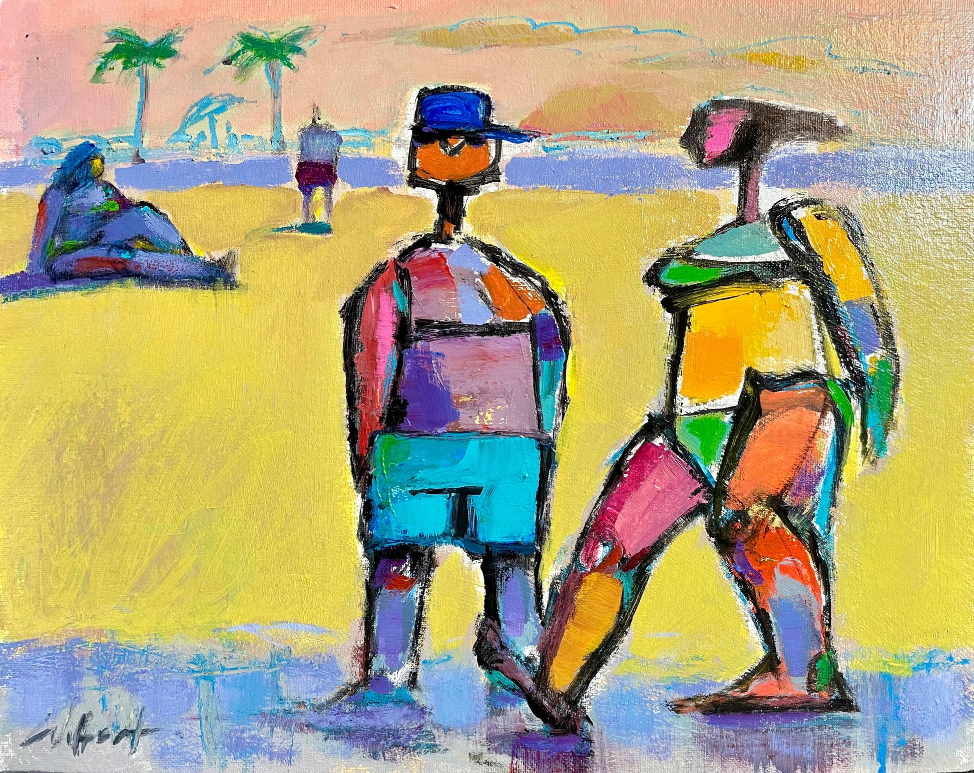Acrylic on canvas panel, 35.5 x 28 x .4 cm ( 14 x11 “). Fun and uplifting piece.